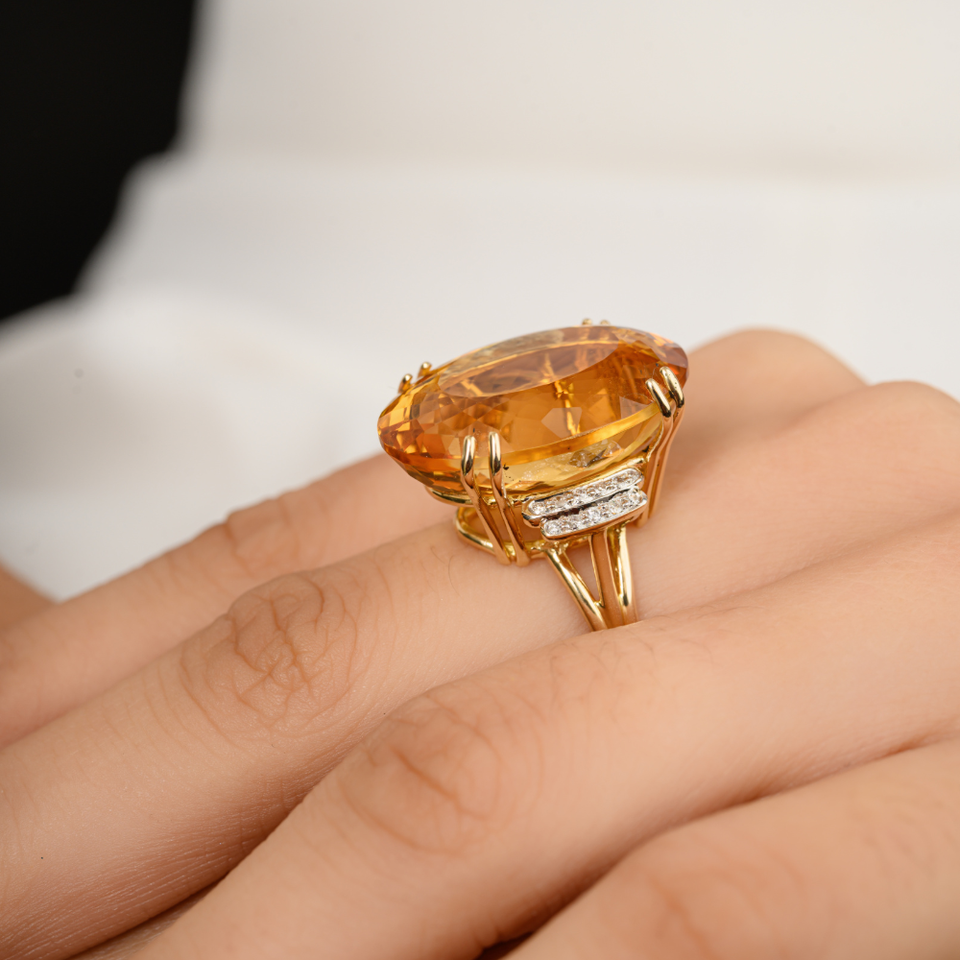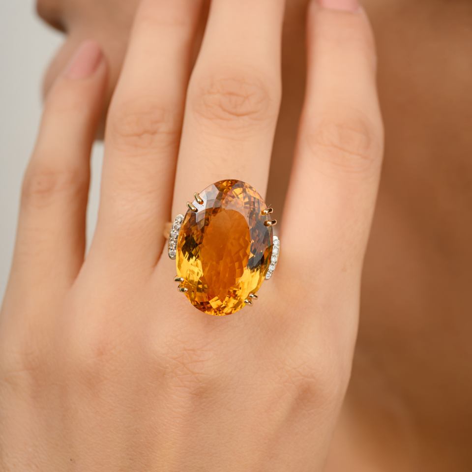 Top Quality Oval Citrine & Round Diamond Cocktail Ring Women Jewelry Solid 14k Yellow Gold Luxury & Classic Style