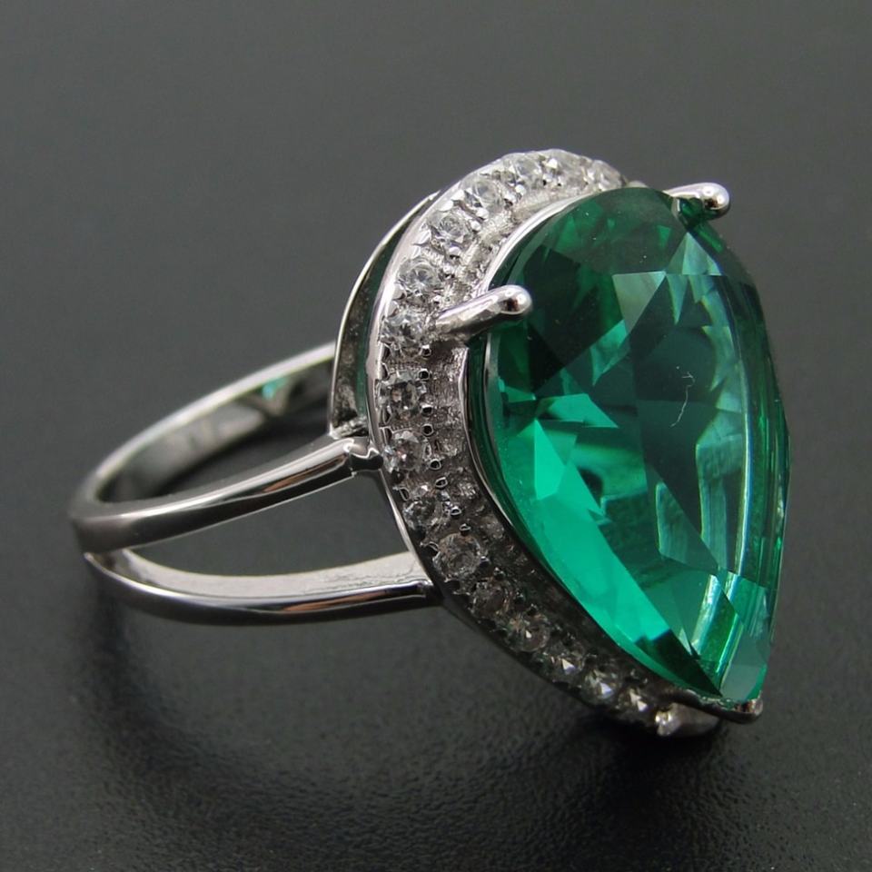 Top Quality Pear-shaped Green Spinel Ring 925 Sterling Silver Zircon Jewelry