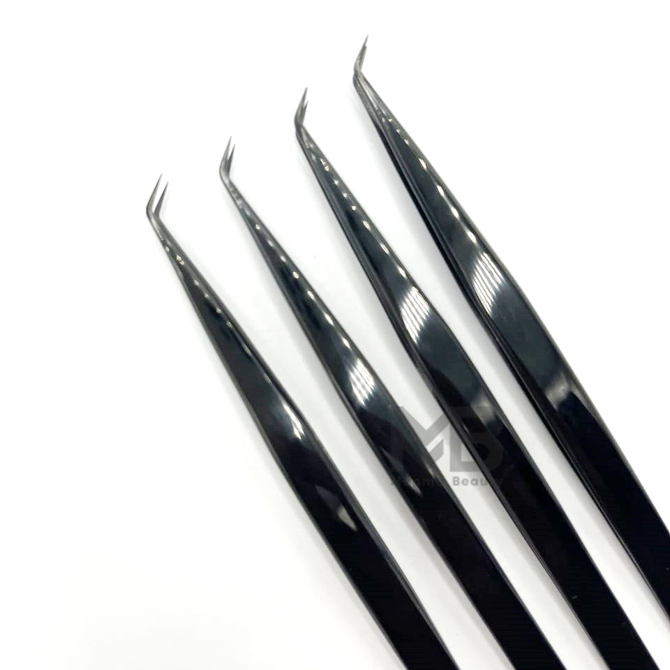 Top Quality Plain Grip Black Plasma Color Coated Eyelash Extension Tweezers with Custom Logo Japanese Stainless Steel 45 Degree