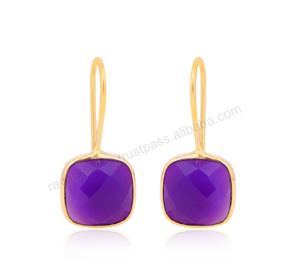 Top Quality Purple Hydro Quartz Faceted Earrings 925 Sterling Silver Women Dangle Drop Earrings Square Cut Gift Jewelry for Moms