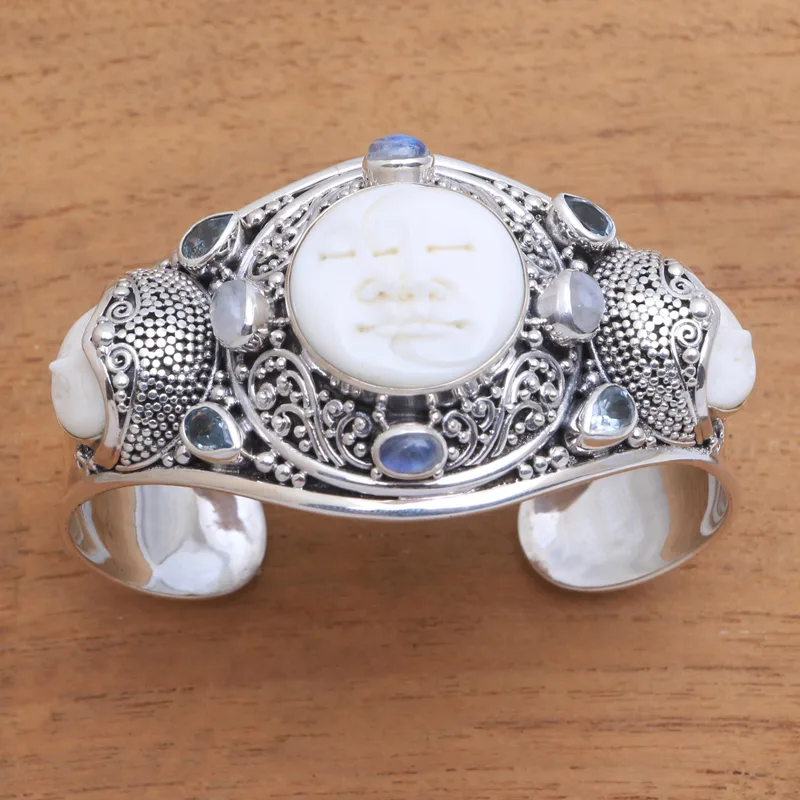 Product name:Rainbow Moonstone and Blue Topaz Cuff Bracelet