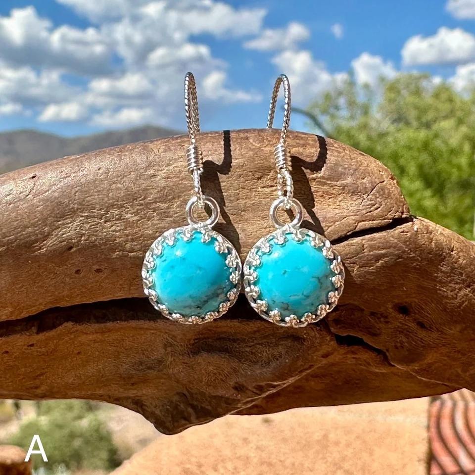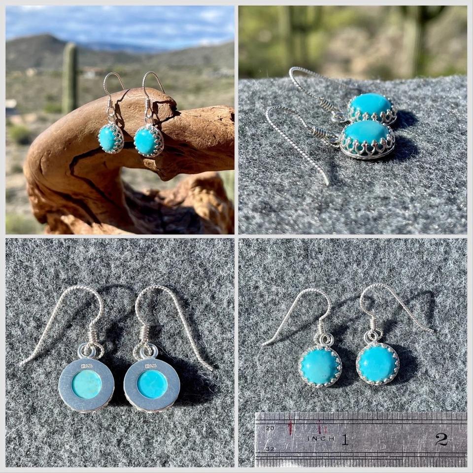 Top Quality Real Turquoise Earing with 10mm Round Kingman Gemstone Sterling Silver Jewelry Handmade Blue Stone Ring Gift for Her