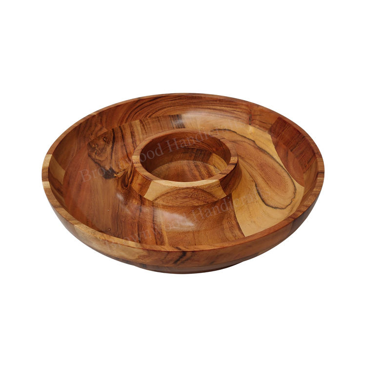 Top Quality Round Shape Natural Wood Finished Acacia Wooden Chip Dip Bowl Custom Design Wooden Sauce Bowl at Cheap Price