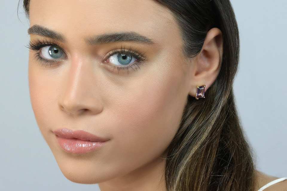 Top Quality Solid 925 Sterling Silver Gold Plated Natural Purple Amethyst Cushion Cut Gemstone Minimalist Stud Earrings Jewelry