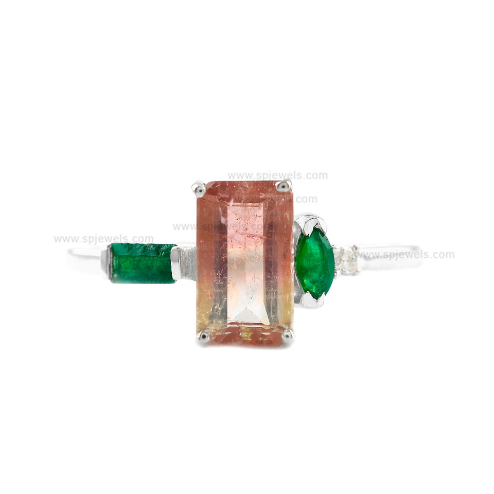 Top Quality Solid Watermelon Tourmaline Diamond Ring 14K Yellow Gold Indian Jewelry for Women at Best Price