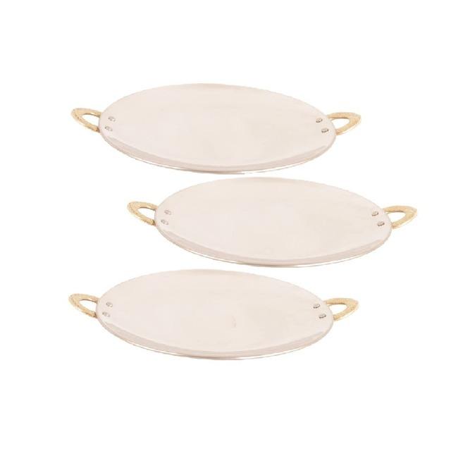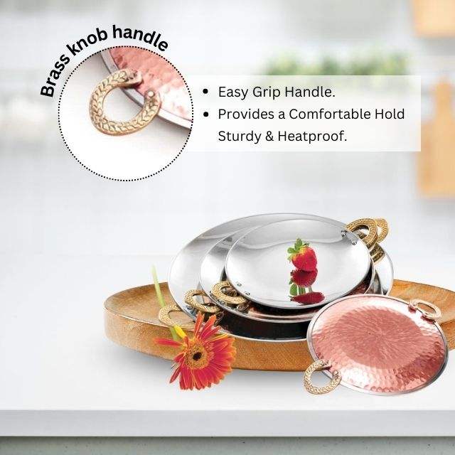 Keywords:Steel Copper Tawa Platter with Brass Handles
