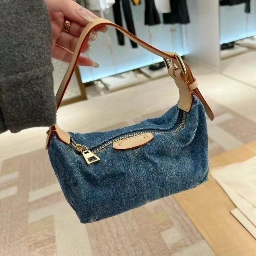 Top Quality Underarm Bags Vintage Luxury Women HOBO Mini Moon Designer Denim Shoulder Bag for Ladies