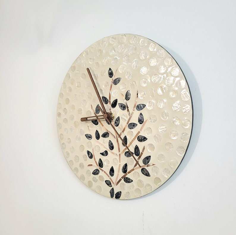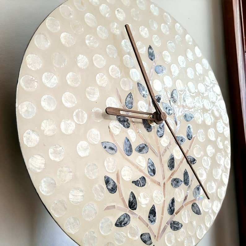 Top Quality Unique Design Mother of Pearl With Rattan Wall Clock for Wall Minimalist Style Decorate Home Made in Vietnam