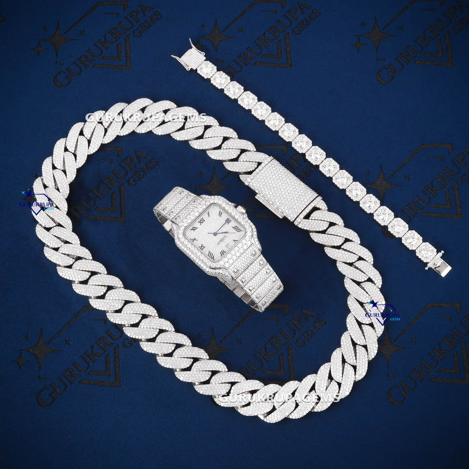 Jewelry set:watch +cuban Necklace+bracelet