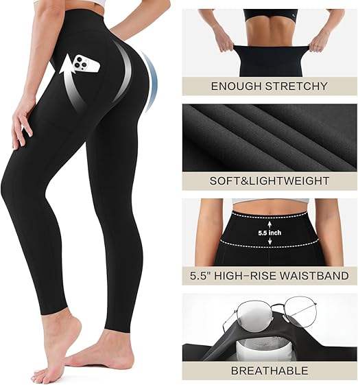 Top Quality Waisted Leggings for Women with Pockets Soft Active Tummy Control Pants for Yoga Running