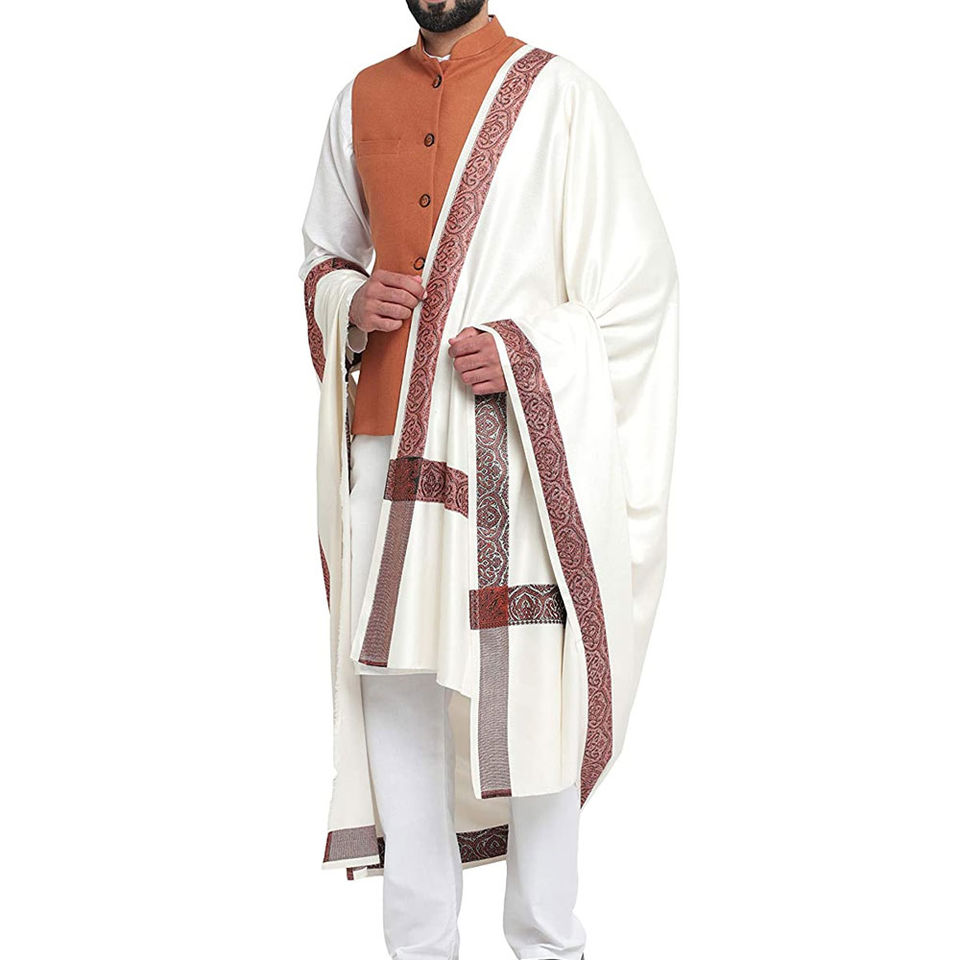 Top Quality Wholesale Elegant White Dyed Boundary Printed Men Shawl Windproof Customized Colors Warm Knitted Shawls for Men OEM