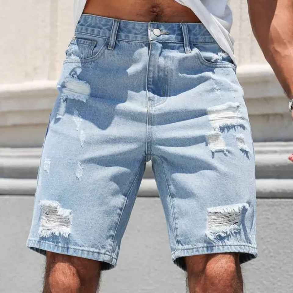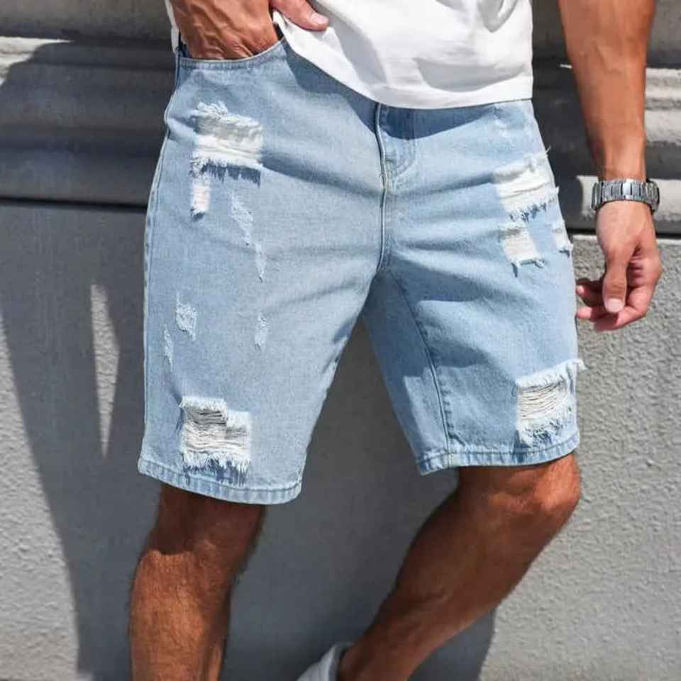 Top Quality Wholesale Ready Casual Men's Jeans Shorts Blank Denim Fabric Vintage Distressed Hole Stone Wash Jeans Shorts for Men