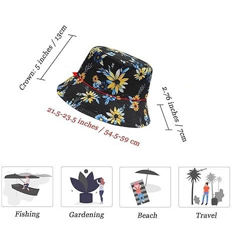 Top Quality Winter Outerwear Embroidery Printed Stylish Bucket Hat Flowers Floral Print Fisherman Bucket Hats For Men & Women