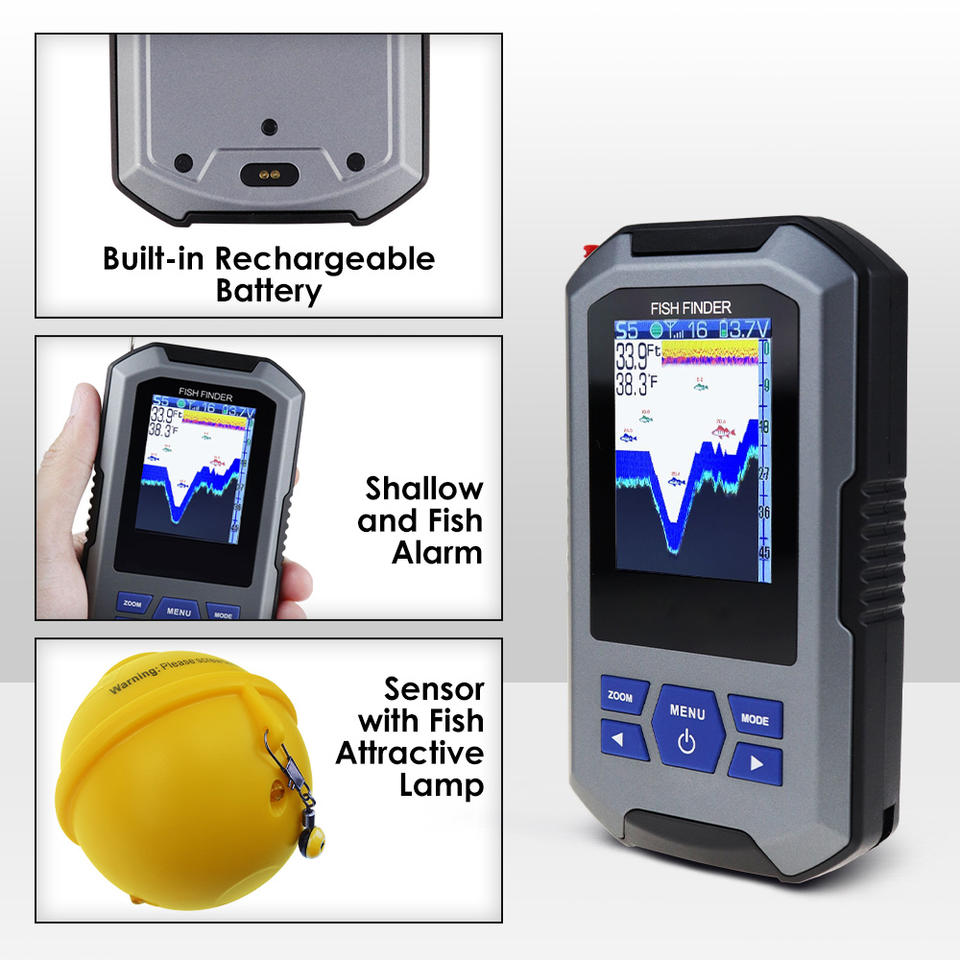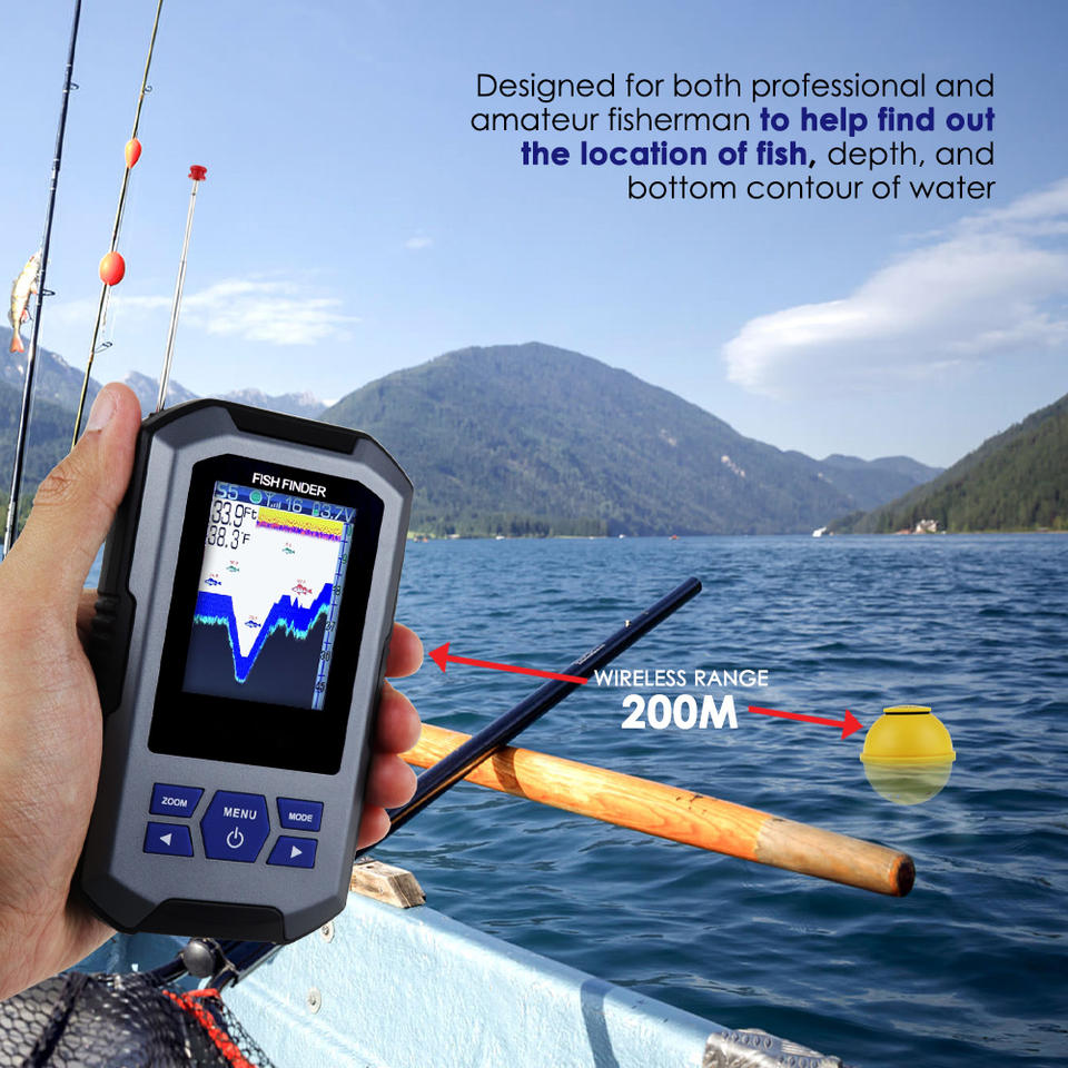 Top Quality Wireless Fish Finder Sonar Sensor 45 Meters (147 Feet) / 0.7 Meters (2 Feet) Colored LCD 200M Wireless Range