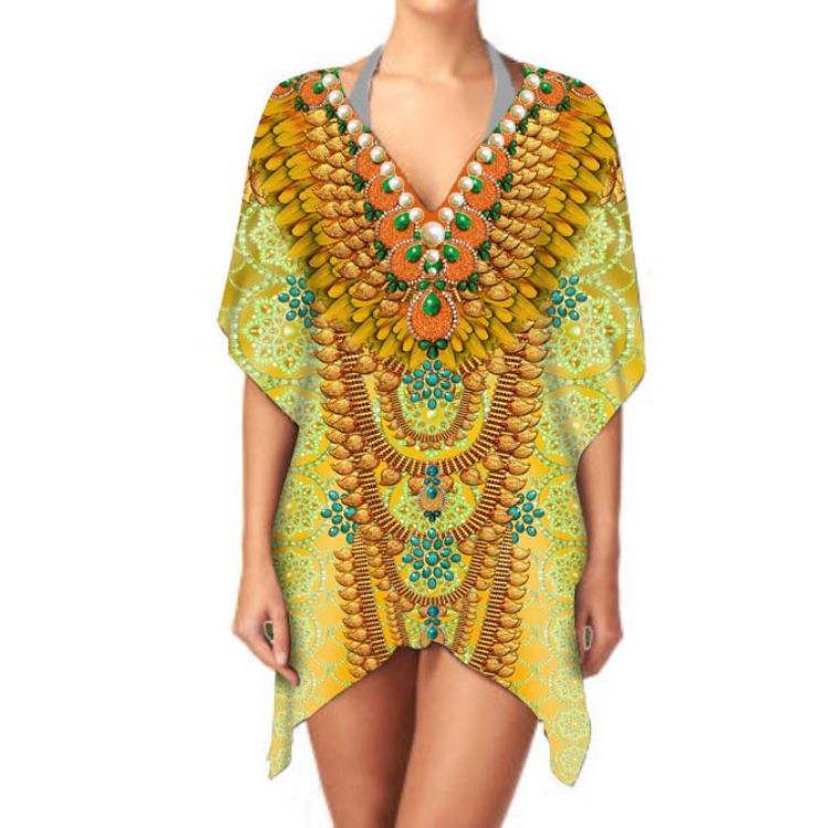 Top Quality Women's Ethnic Print Chiffon Kimono Lightweight V Neck Long Sleeve Stylish Casual Wear Elegant Cover up for Sale