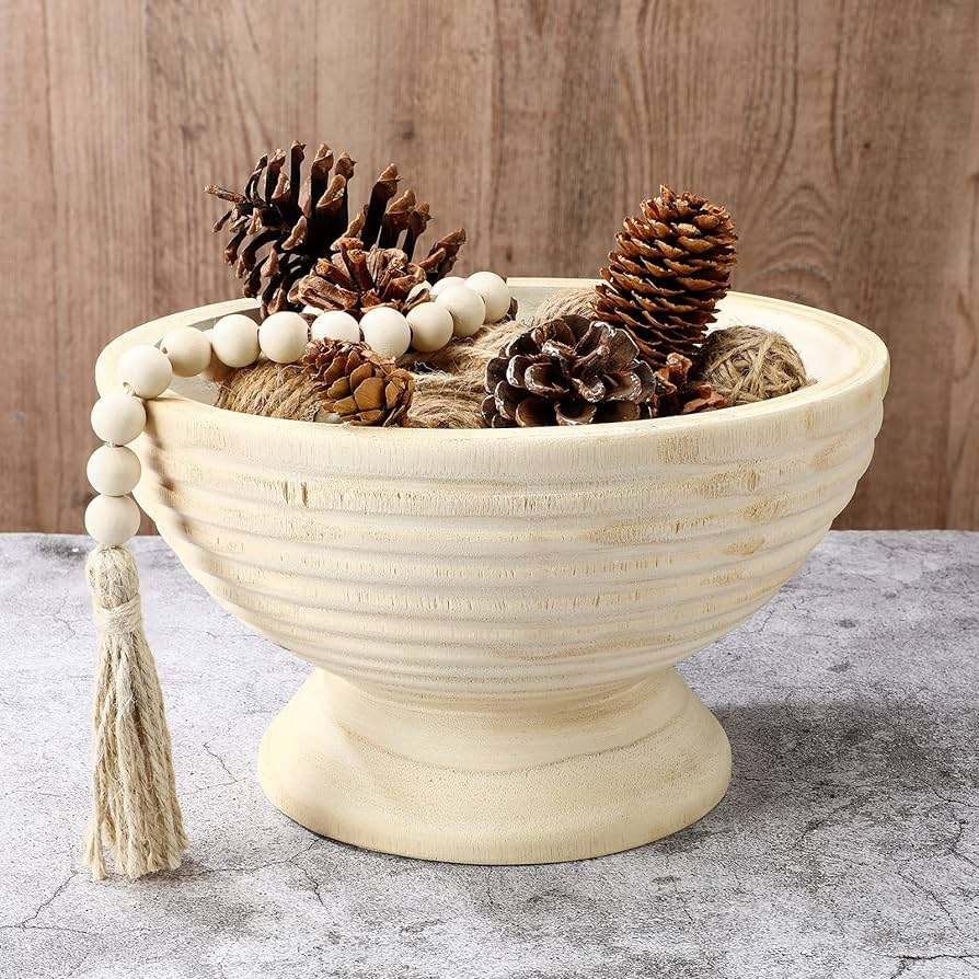 Top Quality Wooden Fruit Bowl for Elegant Kitchen - Kitchen Counter Fruit Holder Decorative Pedestal Bowl Ideal for Table Decor
