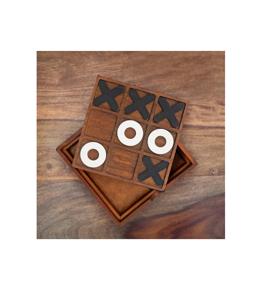 Top Quality Wooden Tic Tac Toe Board Game Natural Polished XO Board Set in Unique Style for Family Enjoyment