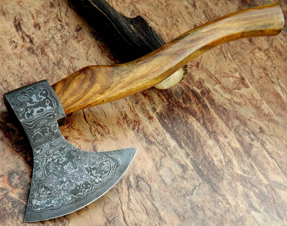 Top-Rated Handmade Damascus Steel Axe Industrial Grade Outdoor Camping Hatchet with Protective Cover Wood Handle Hand Forged