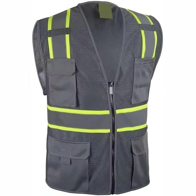 High Visibility Autumn Safety Vest for Men Durable Breathable Polyester/Cotton Fabric for Construction Traffic & Outdoor Jobs