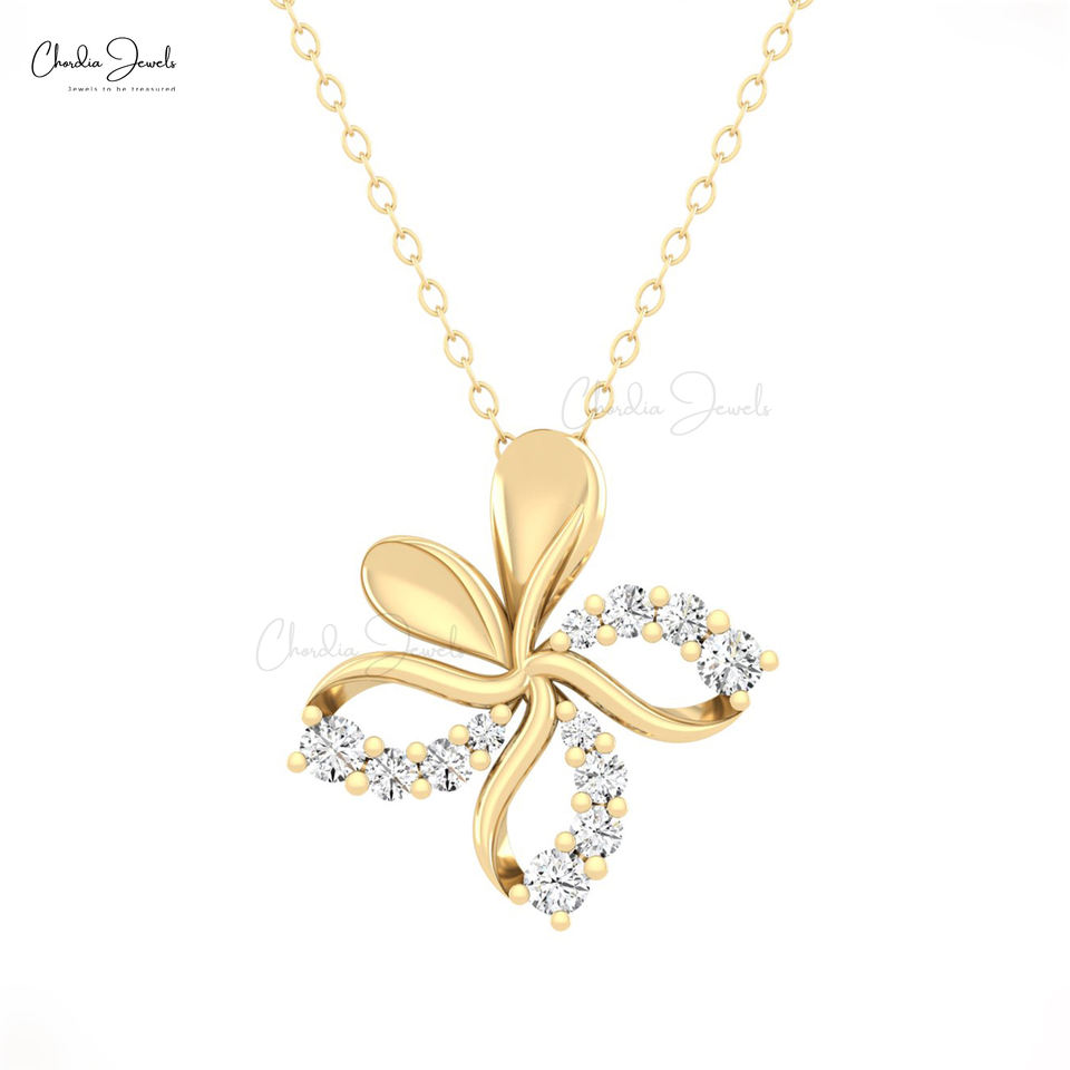 Top Rated Wholesale Supplier 0.41 Carats Round Cut Mix Size Diamond Hidden Bail Pendant Real 14k Solid Gold Flower Shape Pendant