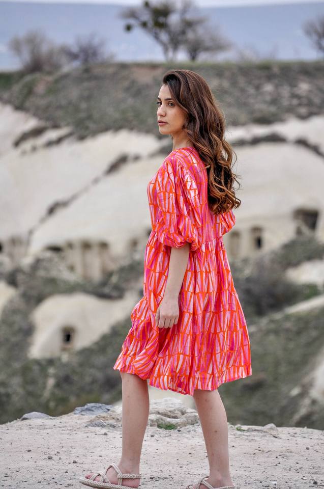 Top Red Pink Orange Summer Dress Ballon Sleeve Party Over the Knee Dress Multicolor Summer Short Sleeve Maxi for Woman Lady Girl