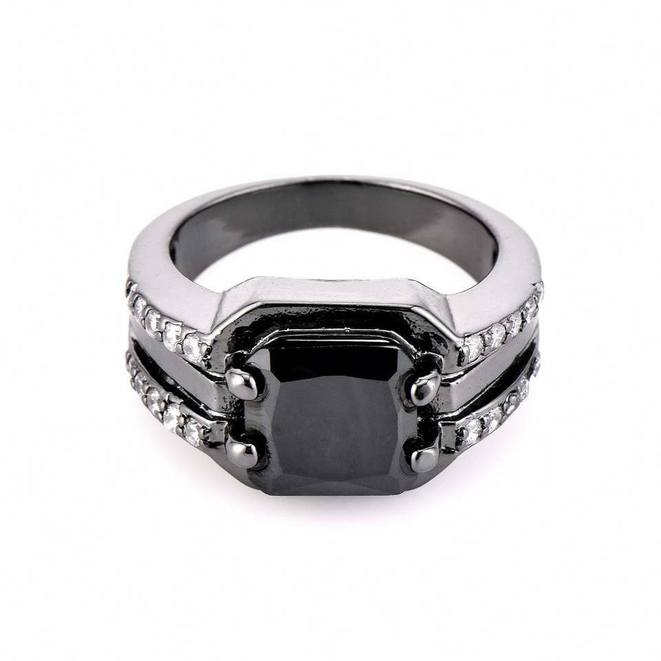 Top Sale Classic Fashion Men's Finger Gem Ring Black Gold Coral Stone Bevel Edge Wedding Party Accessories