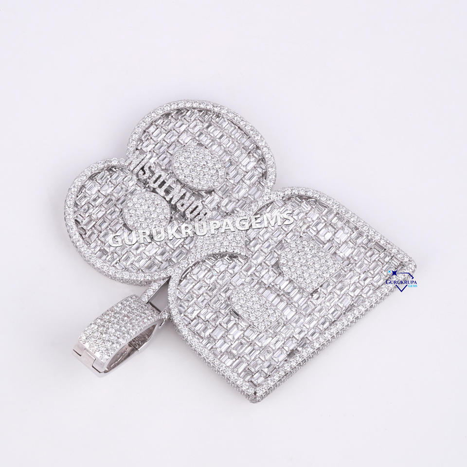 Top Sale Iced Out Big Latter Round Emerald and Buaguette Cut VVS Lab Grown Diamond 14Kt White Gold Pendants for Party Style
