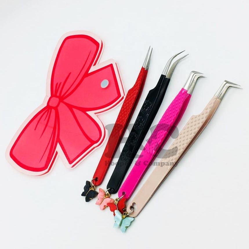 Top Sale Lash Tiles Tray Hand Made Acrylic Tile mink Tweezers Holder Magnetic Tile Logo Sustainable Butterfly Charm Tweezer Flat
