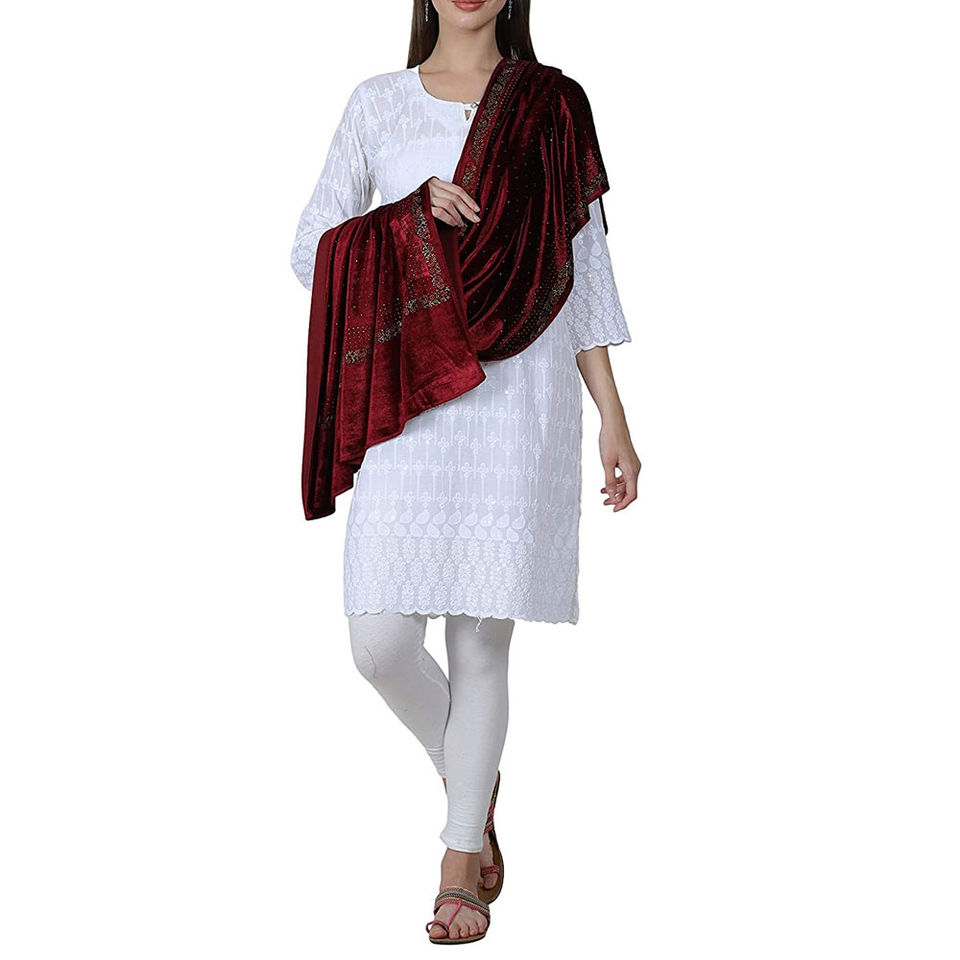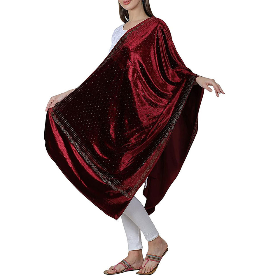 Top Sale Winter Wear Velvet Velour Beautiful Color Pakistani Shawl Women Wear Maroon Color Velvet Shawls Wholesale Customized