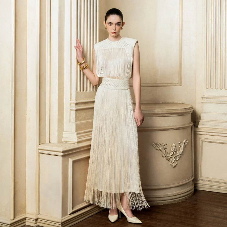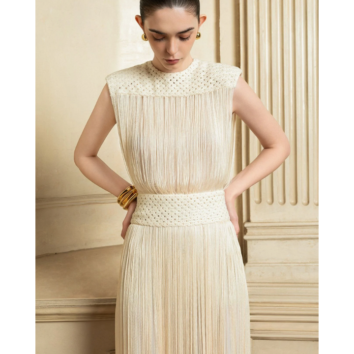 Top Sale Women's Long Dress IVY MIDI DRESS Long Fringe Dress 90% Cotton, 10% Polyester Women Clothing Elegant Private Labeling