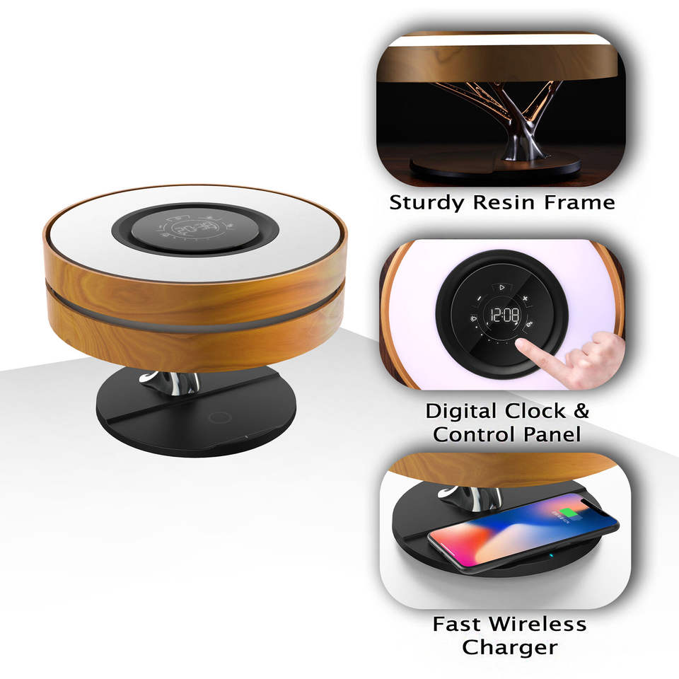 Functions:Table Lamp+Bluetooth Speaker+Wireless Charger+Digital Clock