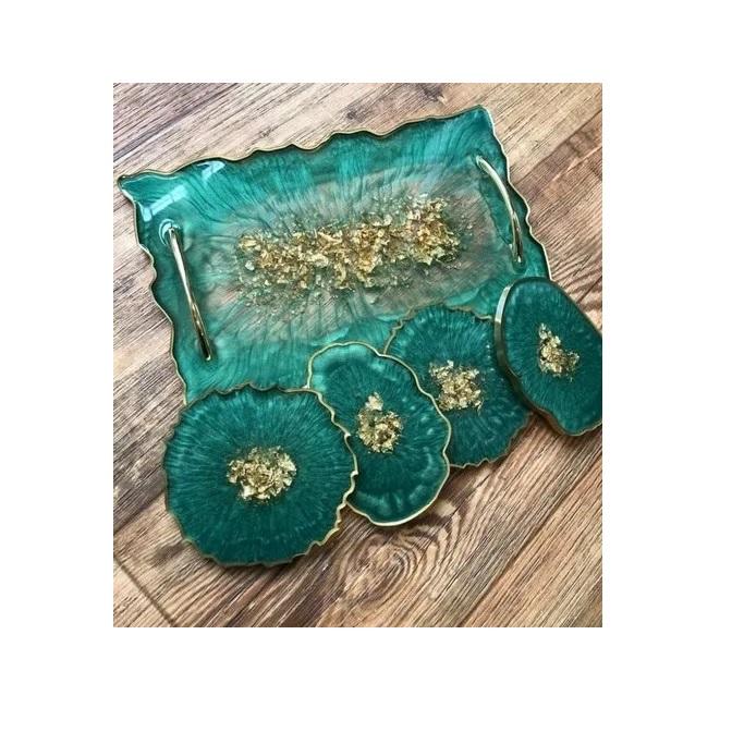 Top Sales Rectangle Resin Tray & Round Coasters Set for Table Decoration Epoxy Resin Serving Tray With Coasters Set for Home