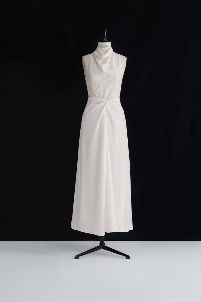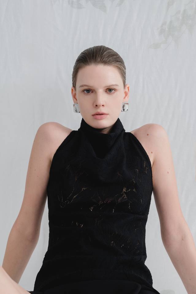 Top Sales Sleeveless Lace Shirt With Rib Buckle FARAH HALTER NECK TOP Organic Cotton Flower Lace Fabric WHITE ANT Vietnam Brand