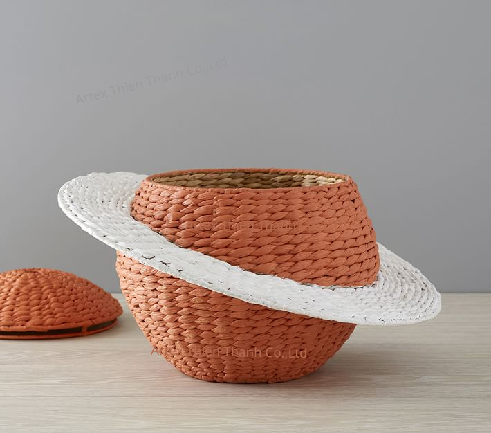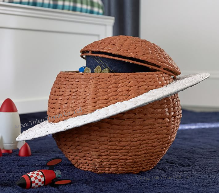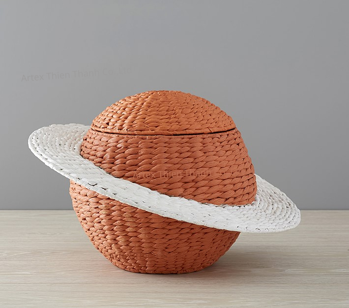 Top Selected Eye Catching Saturn Shaped Storage Natural Water Hyacinth Kid Storage Basket for Nursery Kid Room