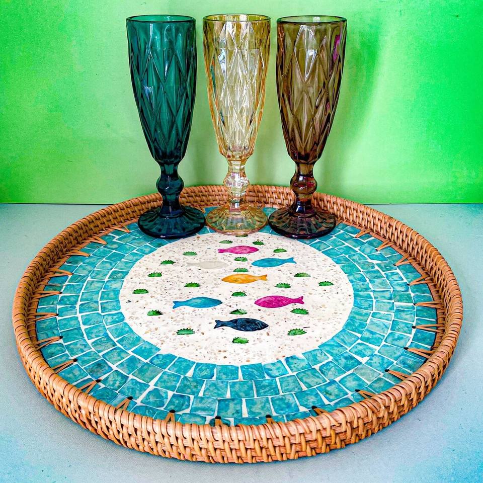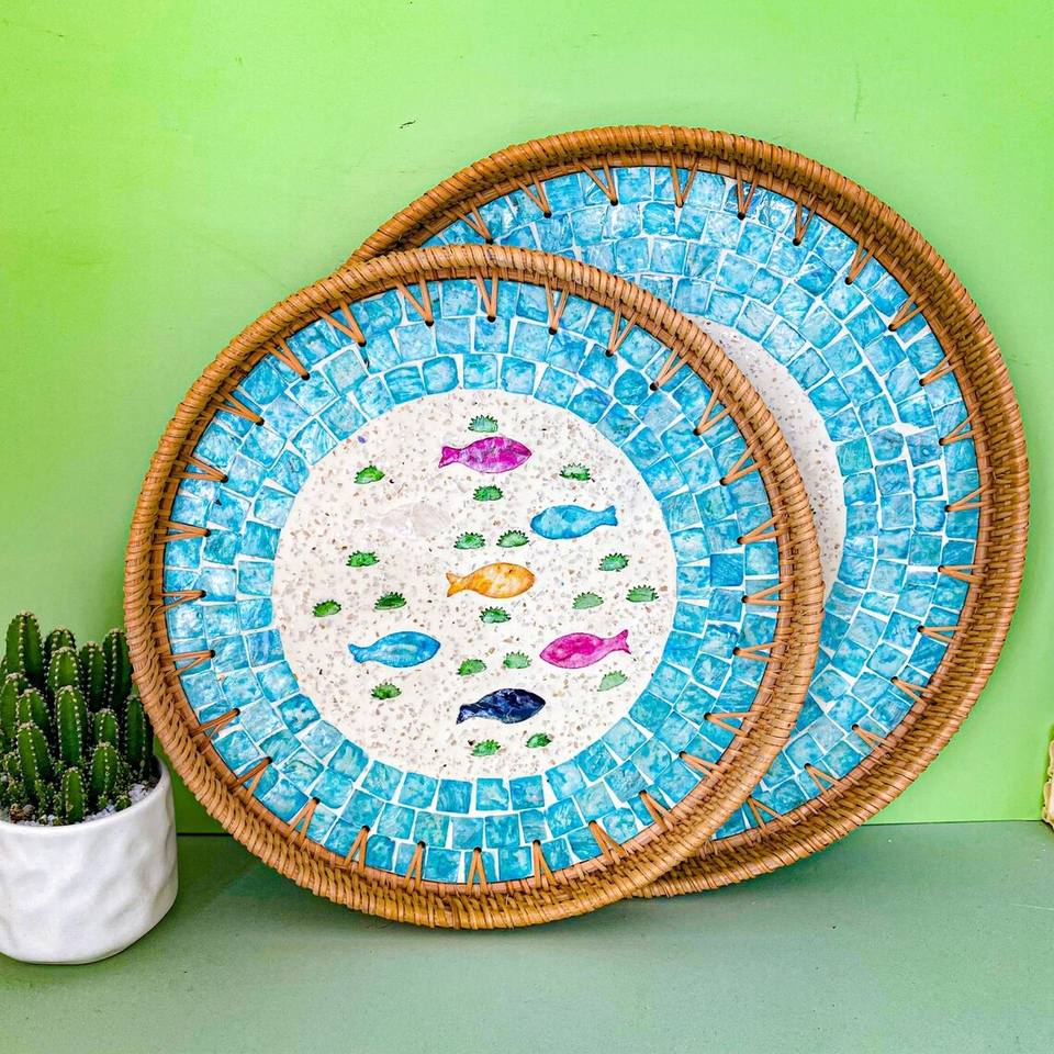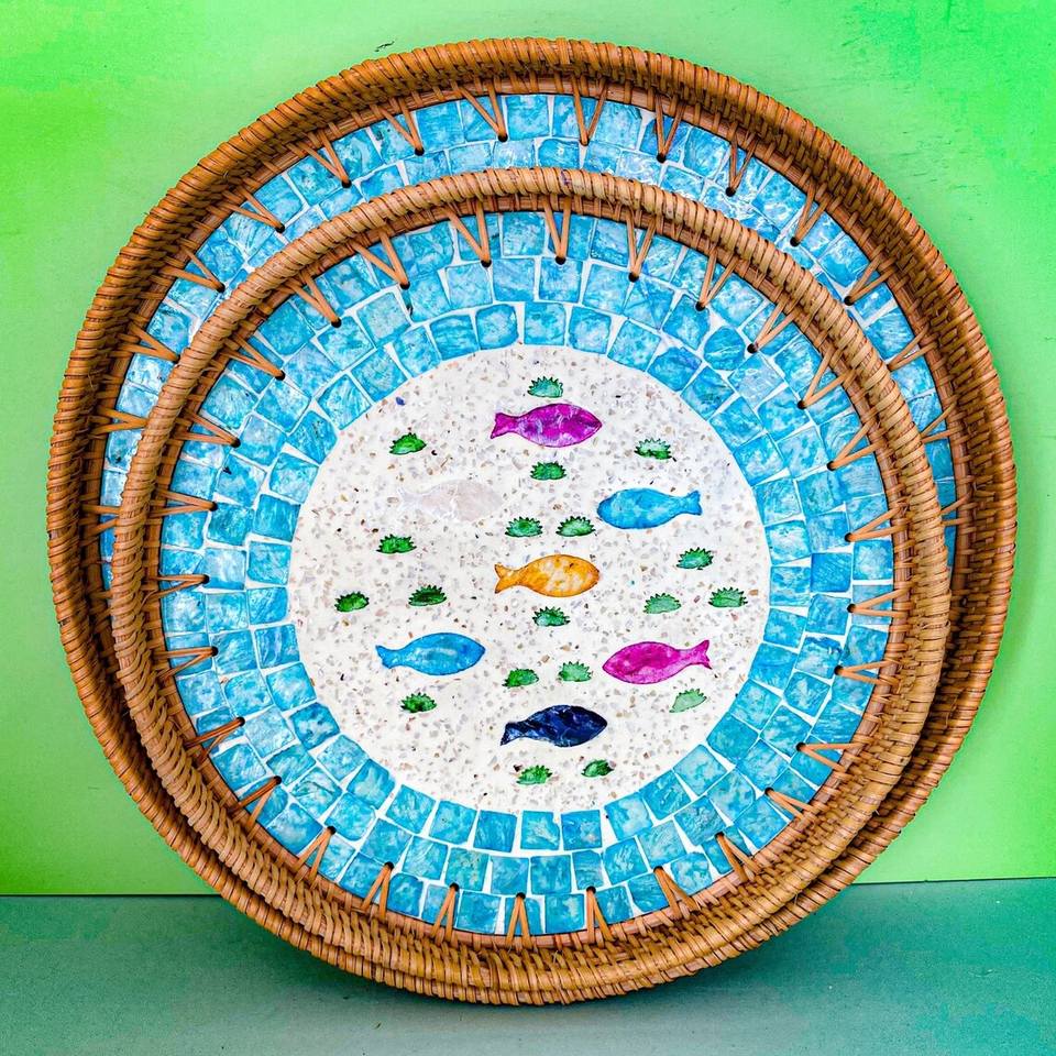 Mother of pearl & rattan serving trayProduct Name