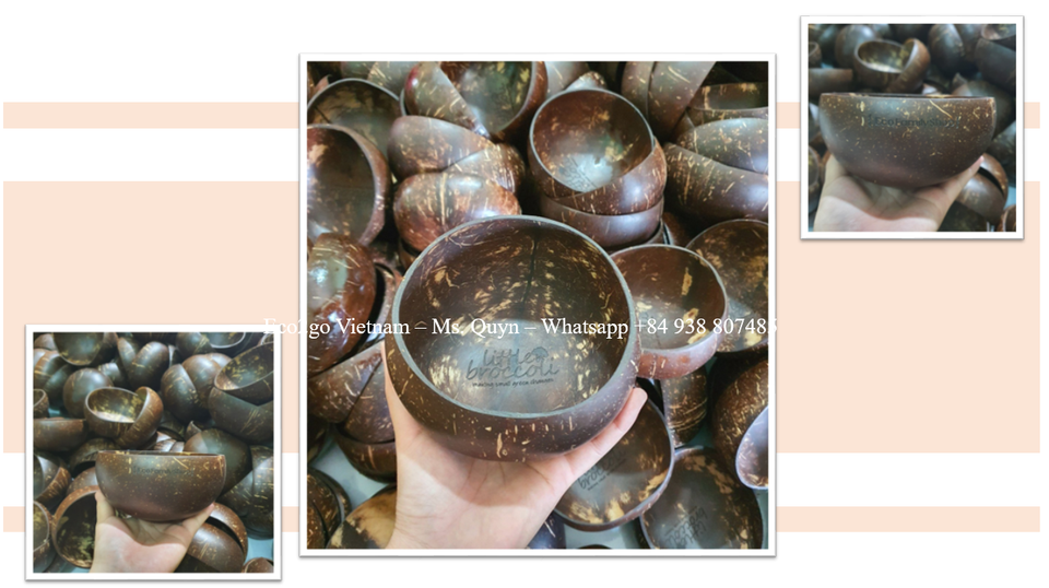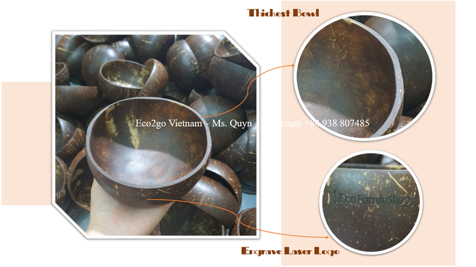 Top Seller 2025 Coconut Shell Bowl With Engrave Laser Logo for Holding Food, Smoothies Made in Vietnam by Eco2go Vietnam