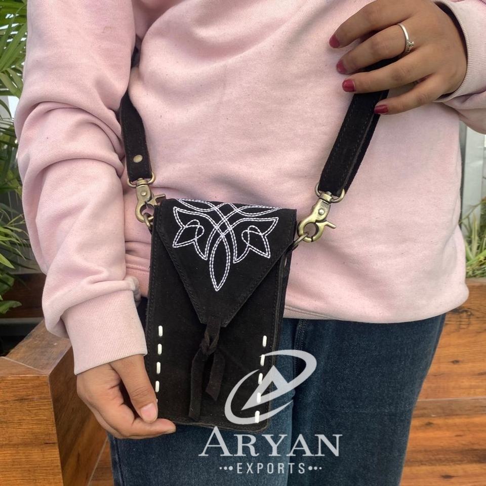 Top Seller Boot Stitch Suede Leather Cell Phone Crossbody Bag for Women's Luxury Genuine Leather Mobile Phone Bags for Shopping