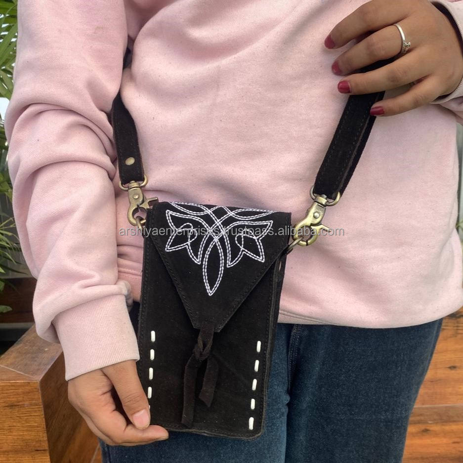 Top Seller Boot Stitch Suede Leather Cell Phone Crossbody Bag for Women's Luxury Genuine Leather Mobile Phone Bags for Shopping