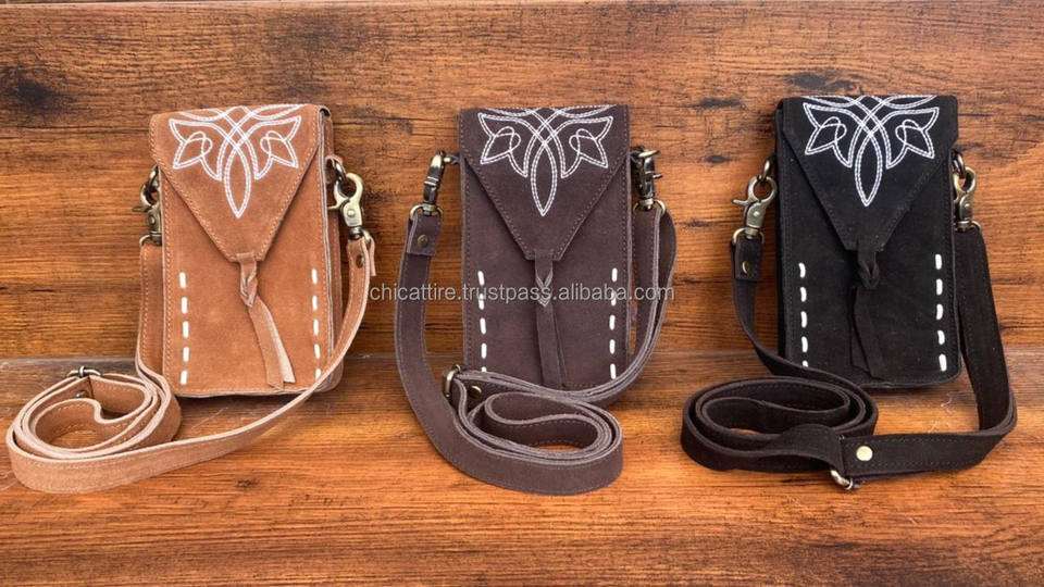 Top Seller Boot Stitch Suede Leather Cell Phone Crossbody Bag for Women's Luxury Genuine Leather Mobile Phone Bags for Shopping