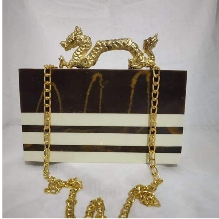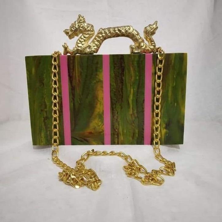 Top Seller Customized Unique Design Handmade Fashionable Resin Lady Clutch Metal Handle Vintage Evening Purse Address Craft