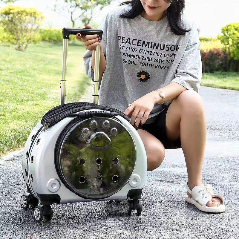 Top Seller Hoopet Acrylic Trolley Pet Dog Cat Bed Backpack Luggage Box Carrier