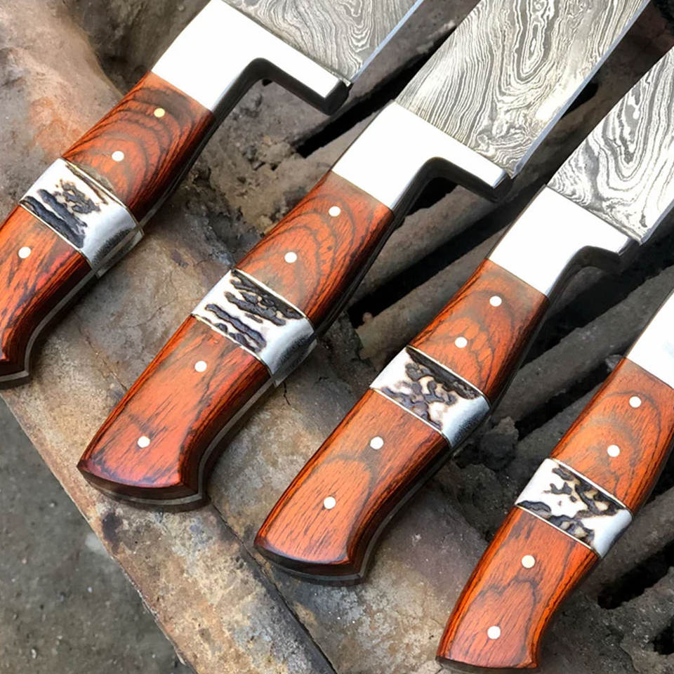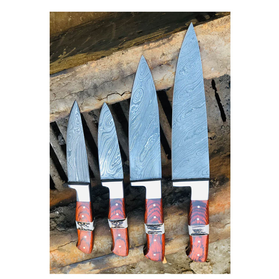 Top Seller New Design Damascus Steel 4Pcs Chef's Knife Set for Home Chefs