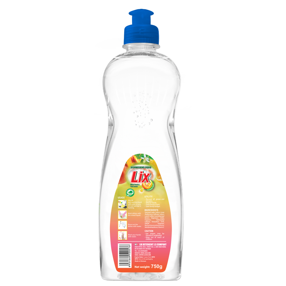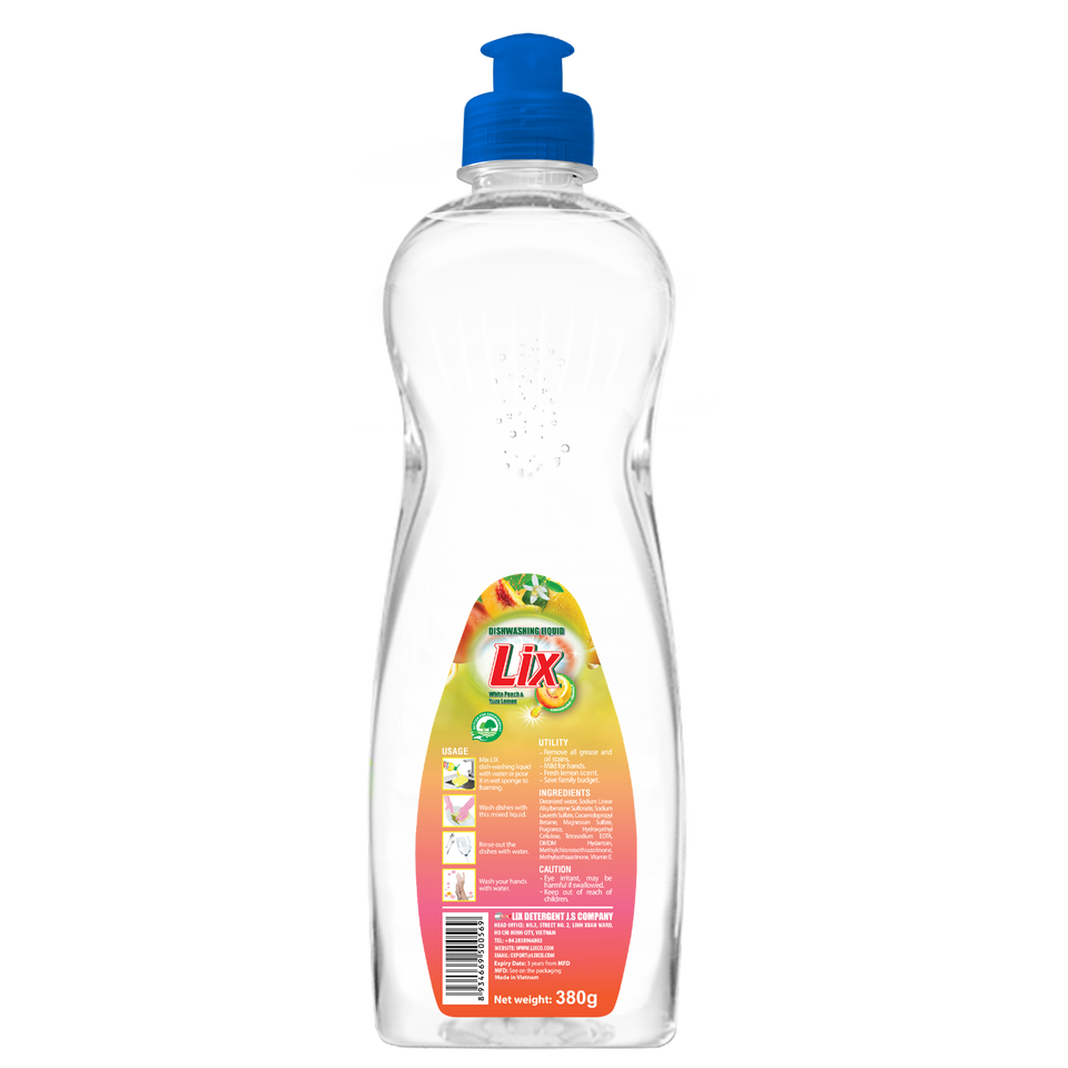 Top Seller OEM Factory-Priced LIX Eco-Friendly Disposable Liquid White Peach Yuzu Lemon Dish Soap 5%-15% Active Ingredient