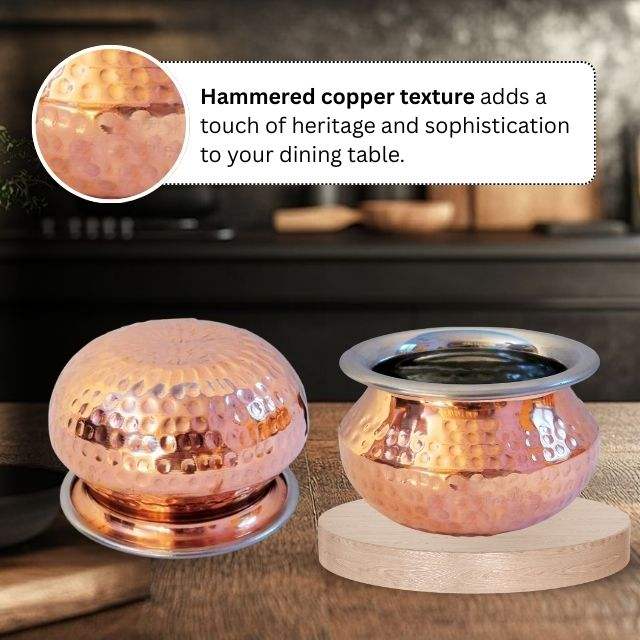 Top Seller Steel Copper Handi with Serving Punjabi & Rajasthani Hammered Design for Hot Biryani Curry Food Dishes Serveware