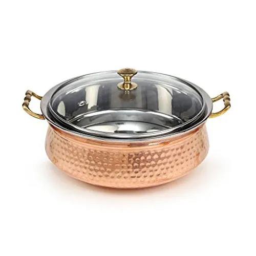 Name:Copper Handi with Glass Lid and Brass Handle