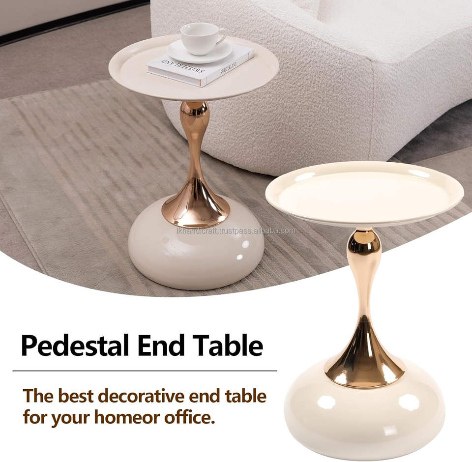 Top Seller White Modern 2-Tier Pedestal Metal Nightstand Small Spaces Accent Side Table for Bedrooms Outdoor Coffee Table
