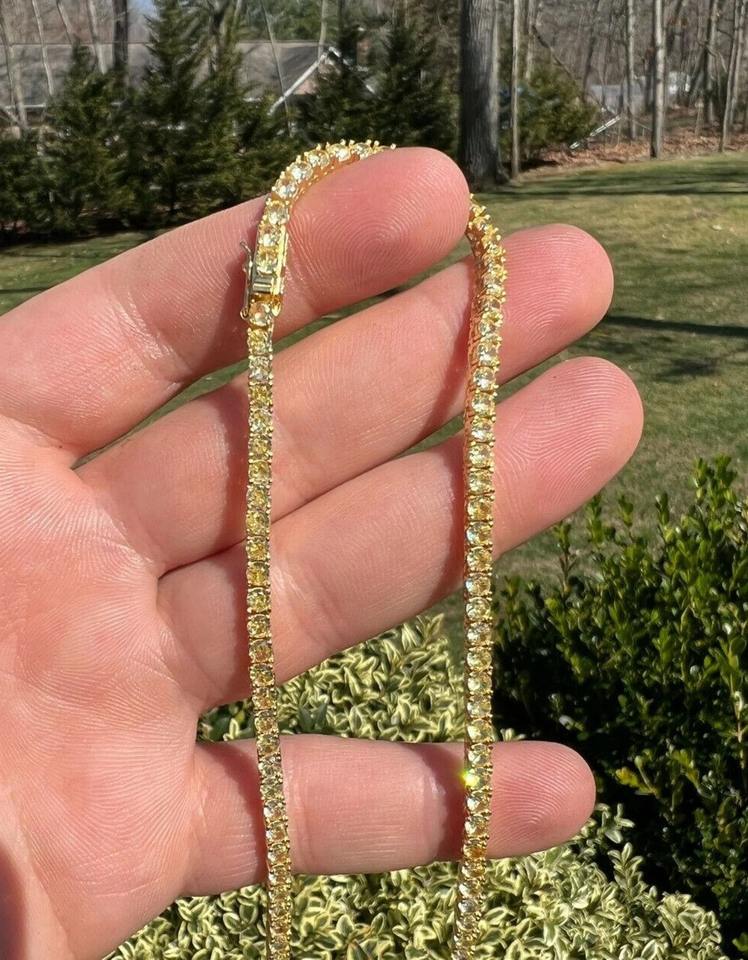 Top Seller Yellow Moissanite Diamond Tennis Chain With Gold Plated 925 Silver Fine Jewelry For Women At Wholesale Price