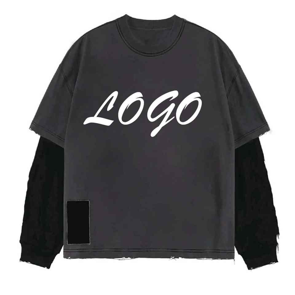 Top Selling 100% Cotton Eco-Friendly Breathable 300g Thick Cotton Custom Dtg Print Double Layer Waffle Long Sleeve Men's T-Shirt