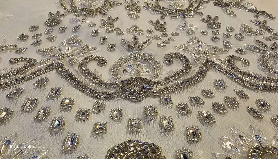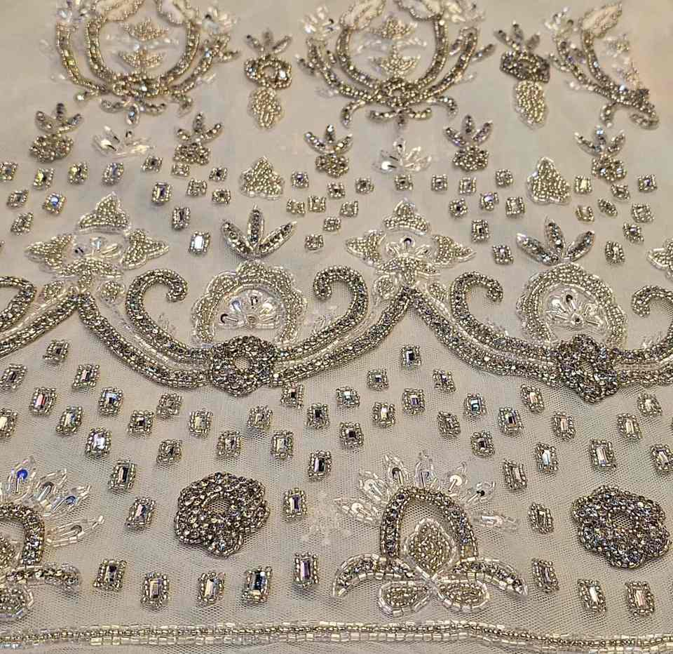 Top Selling 100% Polyester Luxury Beaded Fabric with Zircon Handmade Indian Supplier Woven Mesh Pattern Wedding Garments