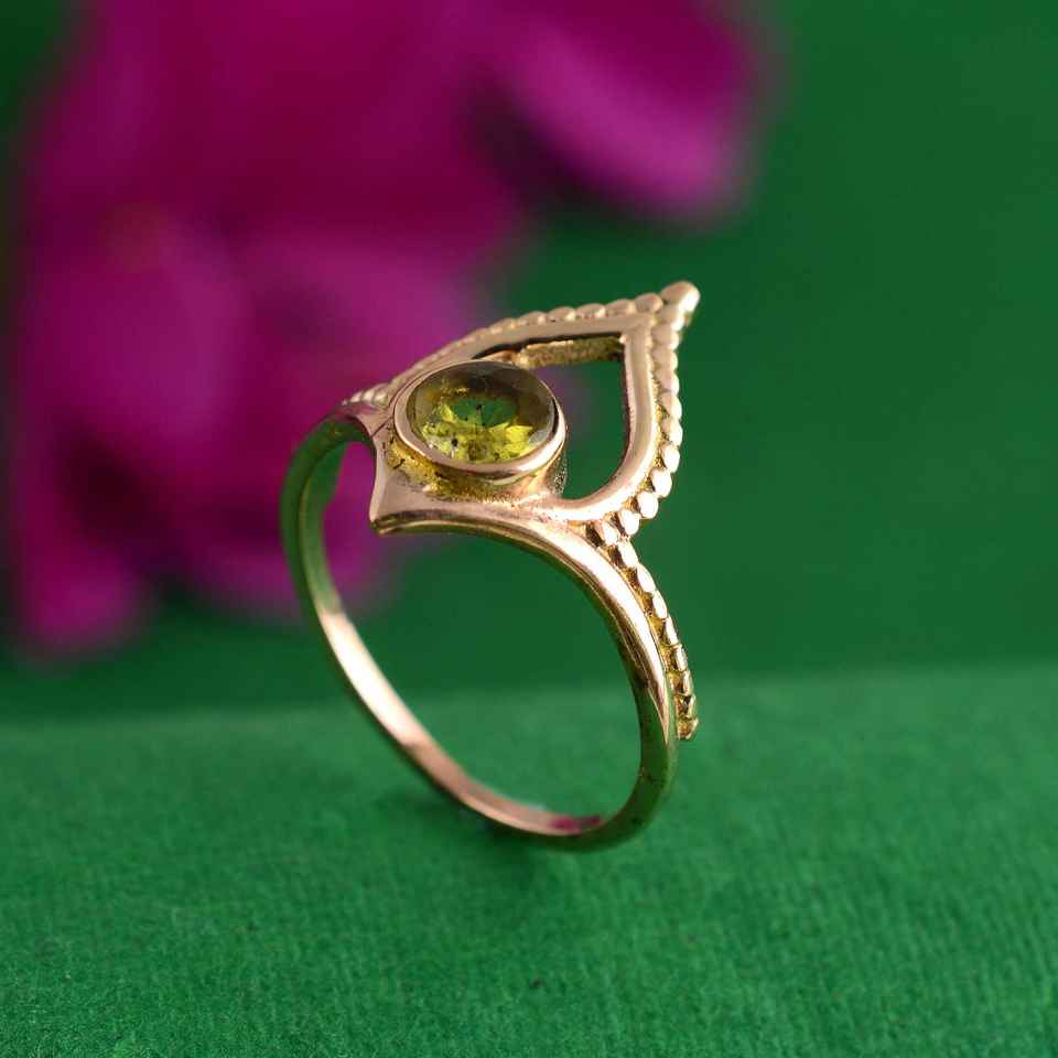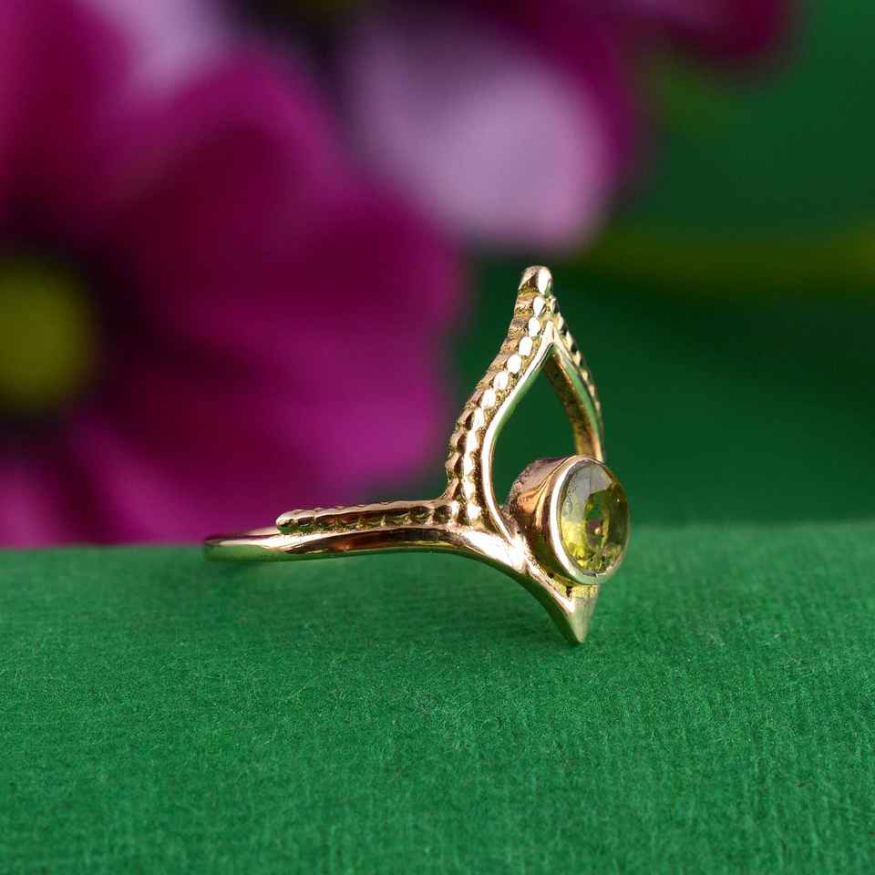 Top Selling 10K Gold Dainty Brass Handmade Peridot Ring Diamond Chevron Design Women's Wedding Anniversary Wedding Gifts Fingers
